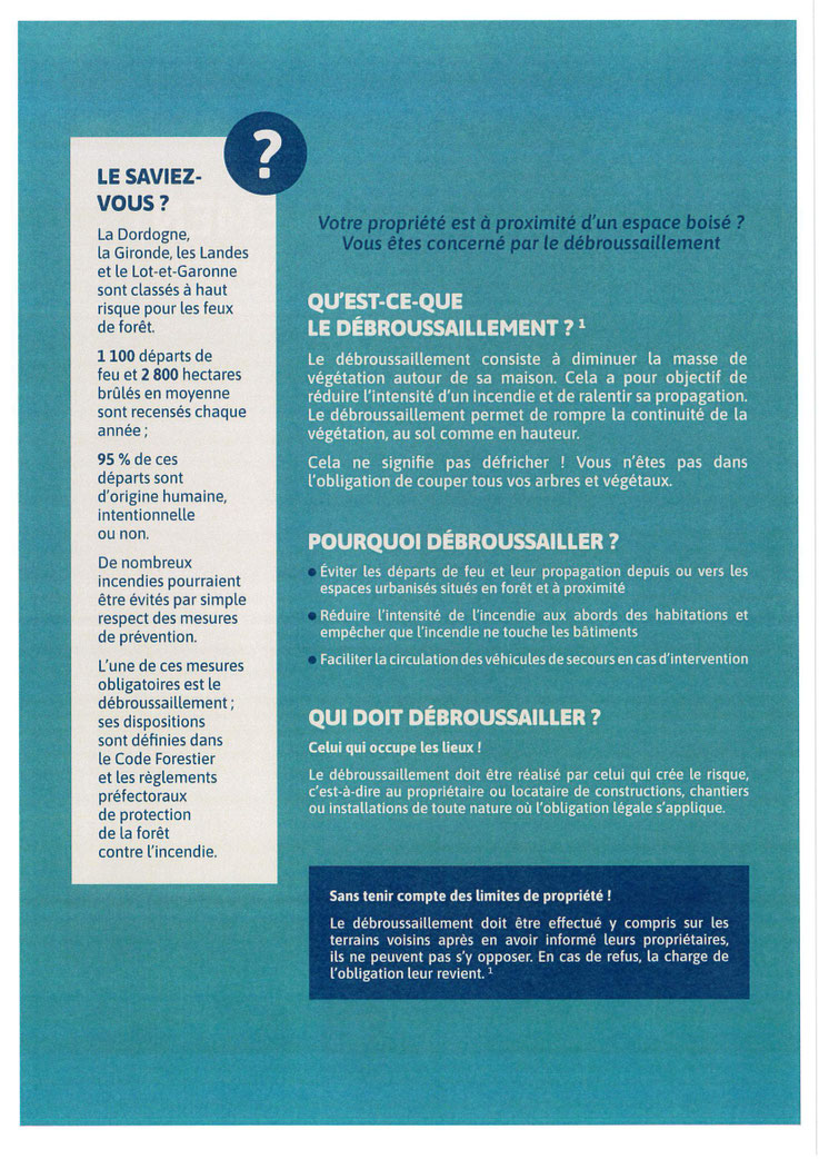 Nous vous rappelons les consignes OBLIGATOIRE de débroussaillement